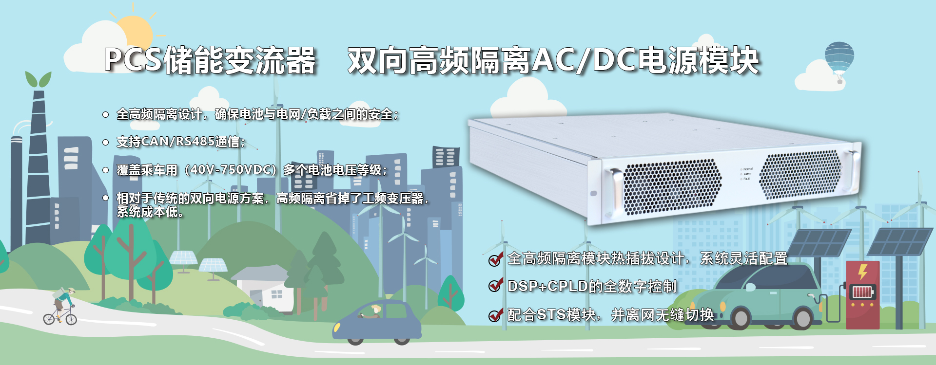 專為中小型工商業(yè)儲能系統(tǒng)量身打造的模塊化變流器產品,支持并網、離網運行。該模塊支持雙向能量流動、超寬范圍電池電壓,可與不同類型電池搭配使用,滿足不同應用場景的需求